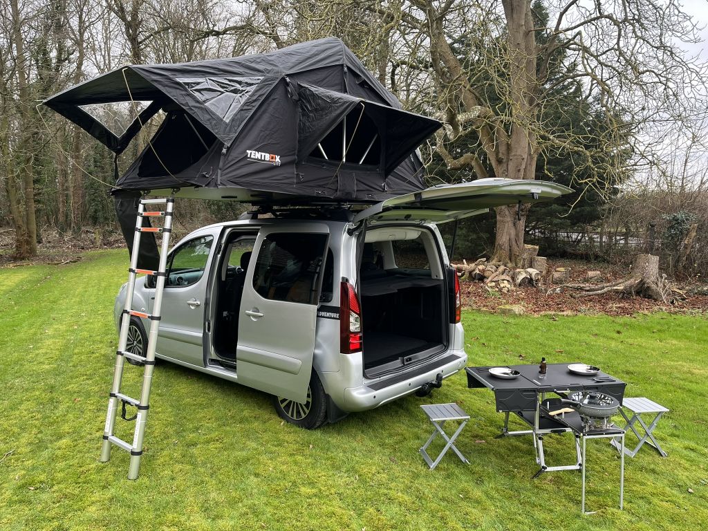 This is a special edition 'Adventure' Micro Camper which you can pitch anywhere! It is three vehicles in one! A car – for normal day to day use with 5 belted seats and fits into a normal parking space; Campervan – set off with moment's notice to start your very own adventure; Van – the rear seats are easily removed in the vehicle to create a van like space. It sleeps 2/3 in a the 'Tentbox Lite' roof tent (brand new) fitted with 'Thule' roof rails (brand new), 'Kampa' drive away tailgate awning which sleeps at least two more (brand new) and a 'KitchenBox' by 'Tentbox' which is fully portable and includes a table, hob, pan, plates, cutlery, chopping board and chairs! The awning, roof tent and kitchen pod are transferable to another vehicle. This MPV gives you the flexibility of a 5 seater car which you can park in a normal space with the benefit of camper van capability! Please see our dedicated website - www.adventuremicrocampers.co.uk